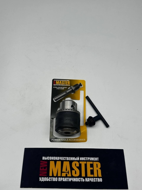 №MS00636 Патрон дрель №13 Патрон для дрели NEW MASTER с ключом — надёжный аксессуар для крепления сверл и насадок. Совместим с большинством электроинструментов. Обеспечивает прочную фиксацию и простую замену оснастки. В комплекте: переходник, патрон и ключ.